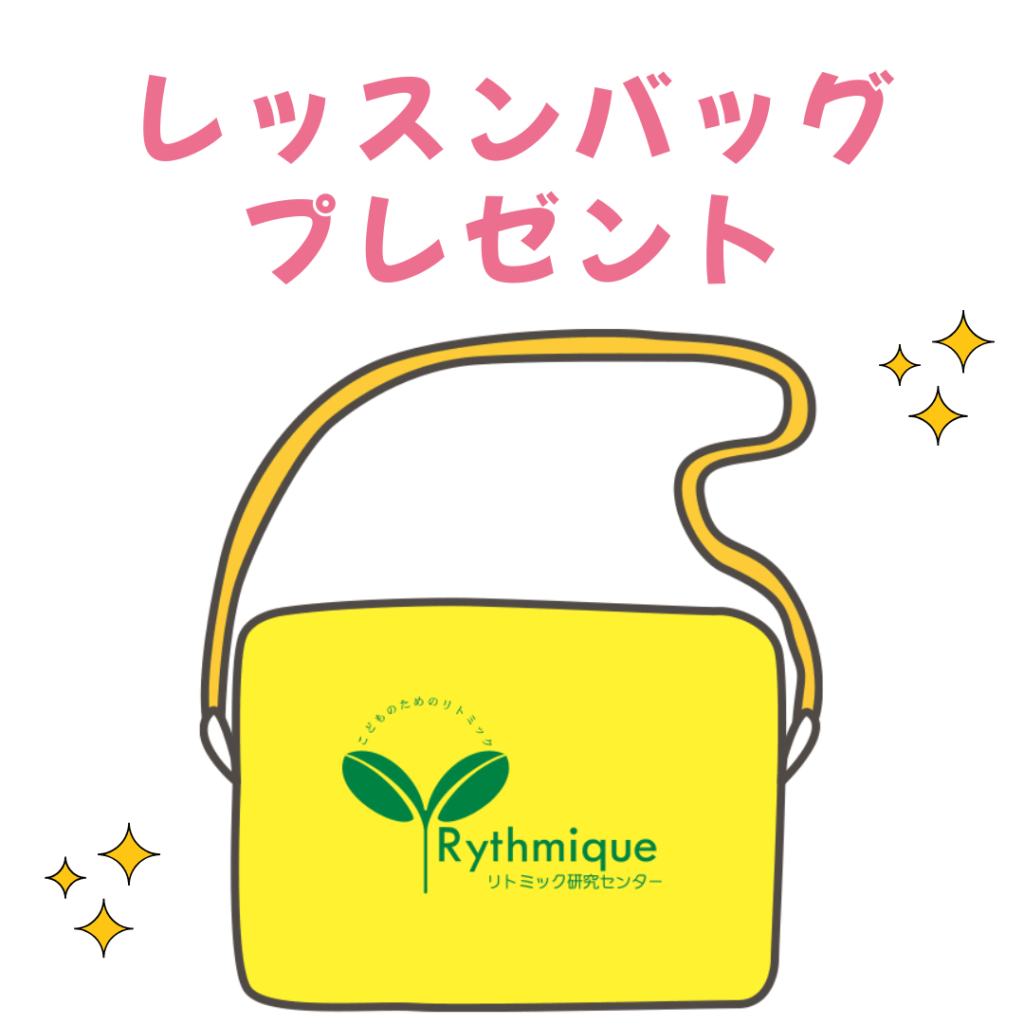 生徒さんが入会時にInstagramアカウント「こどものためのリトミック」をフォローしていると、『レッスンバッグ』をプレゼント!